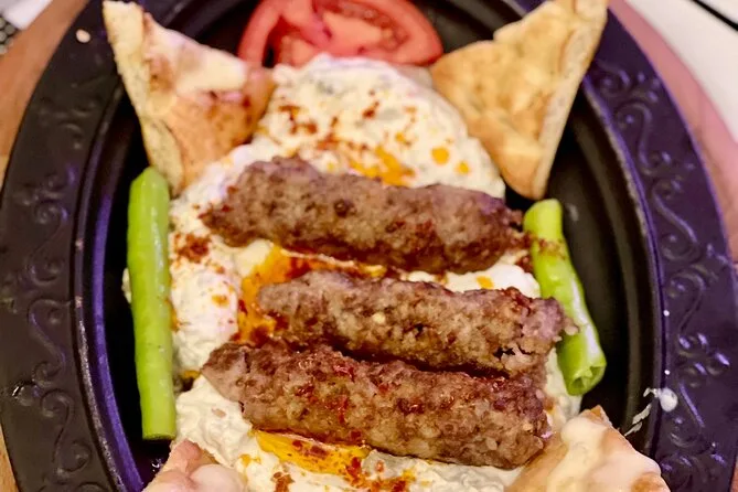 The tour offers some vegetarian options like pickles and cheeses but also features meat dishes such as kebaps and kokoreç.