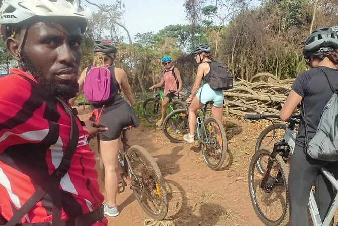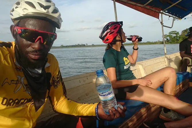 The price includes an English-speaking guide, mountain bike and helmet rental, boat transfers, one soft drink, and a Ugandan snack (rolex).