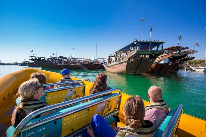 Your experience includes live commentary from your local skipper, use of lifejackets for everyone on board, complimentary bottled water to keep cool under the sun, and all safety gear needed for cruising along Abu Dhabi’s Corniche and coastline.