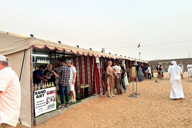 Your evening includes hotel pickup in a 4x4 vehicle from Abu Dhabi, thrilling dune bashing sessions plus a 30-minute ATV/quad bike ride across sandy slopes. You’ll visit a camel farm for photos (and maybe some nibbles), try sandboarding or skiing if you want, then relax at a desert camp with shisha pipes available. Dinner features hot barbecue dishes alongside Arabic coffee and dates while you watch live fire shows, belly dancing and Tanoura performances under starry skies—plus henna tattoos and even Arabic costume photos if you’re feeling bold before heading back late evening.