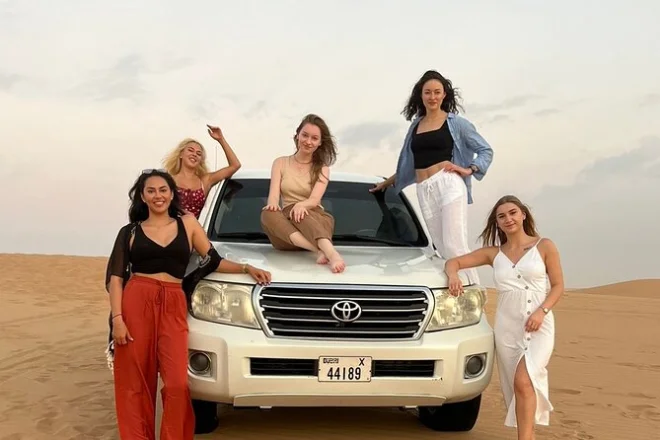 You’ll experience dune bashing, sandboarding, camel riding, live shows (belly dance, Tanoura, fire), shisha, and more.