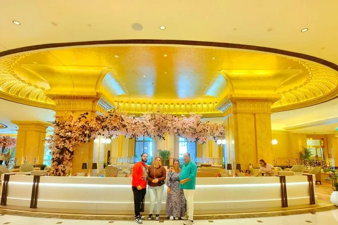After that it was straight to the Heritage Village. I didn’t expect to like it so much — clay walls, old fishing boats, Emirati women weaving baskets while kids ran around in school uniforms. Our guide told us stories about pearl diving and how his grandfather used to work these waters. I tried some dates at the market later (sticky-sweet, almost caramel-like) and bought a small box for my dad back home. At Emirates Palace, we wandered through gold-lit halls — I couldn’t help but laugh at myself for feeling out of place among all that luxury. You can grab coffee here if you want, or just people-watch; both are good options.