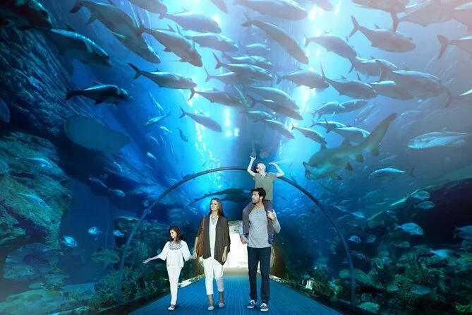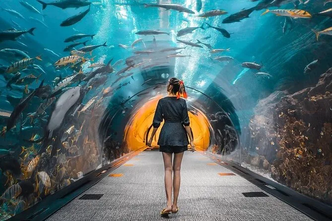 You’ll wander through a massive suspended aquarium tunnel at Dubai Mall, watch rays and sharks glide above your head, and meet King Croc up close. With your entry ticket to Dubai Aquarium & Underwater Zoo, you’ll see exotic species and explore both bright tanks and shadowy zoo corners — all without leaving downtown Dubai.