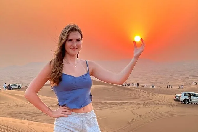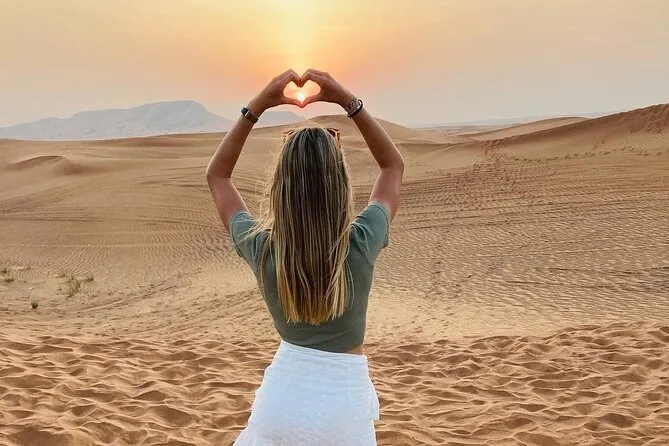 Dune bashing, camel rides, sandboarding, henna painting, photo stops on high dunes, live dance shows, BBQ dinner.