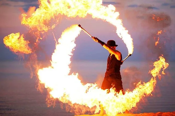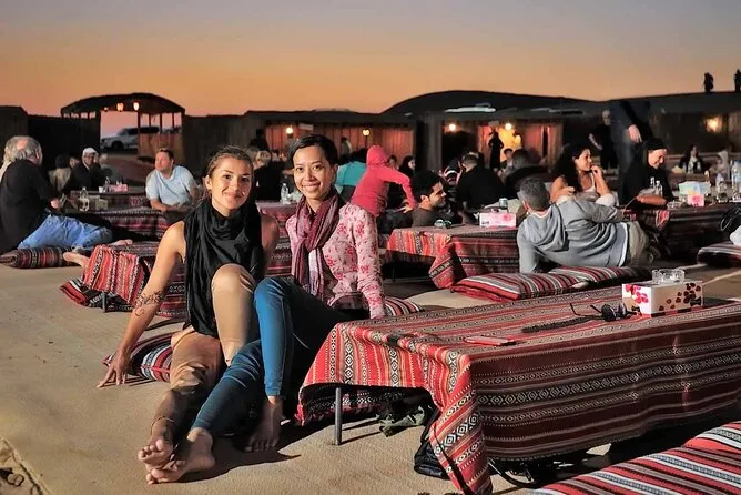 The camp itself felt like something out of a movie set but real — lanterns everywhere, low tables with patterned cushions, someone handing me tiny cups of cardamom coffee and sticky dates right away. I got a henna tattoo on my wrist (the artist smiled when she saw me trying to copy her design). Dinner was smoky barbecue chicken and lamb with salads and these little flatbreads you could dip into everything. Later there were dance shows: swirling Tanura skirts that made me dizzy just watching, then a fire performer who got so close to us you could feel the heat on your face. Somewhere between bites and clapping along, I caught myself thinking how strange it is to feel so far from home but also sort of comfortable in all this noise and color.