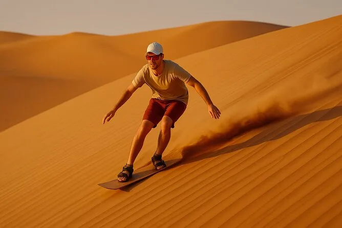 Dune bashing came next. It’s hard to explain that feeling — like a rollercoaster but quieter, except for everyone laughing or squealing every time we slid sideways down a dune. Ahmed seemed to love showing off his driving skills; he’d glance back with this mischievous look whenever someone shrieked. Afterward, we tried sandboarding (I wiped out immediately), and then just stood there for a second watching the light change on the dunes. It was quieter than I expected, except for some distant voices and wind — kind of peaceful in its own way.