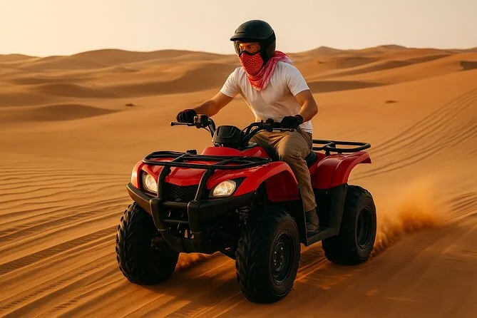 I’d always seen those photos of the Dubai desert — all orange and endless — but actually being out there is something else. Our driver, Ahmed, picked us up right from our hotel in Dubai (he had the AC blasting, thank goodness). The city faded so fast behind us. Suddenly it was just sand everywhere and the sky felt bigger than usual. I could smell dust and something sweet, maybe from the tea Ahmed kept sipping. We stopped at Lehbab for quad biking first — my hands were shaking a bit when I took the handlebars (I’m not exactly a daredevil), but after a few bumps I started grinning like an idiot. The sand feels almost soft under the tires, which surprised me.