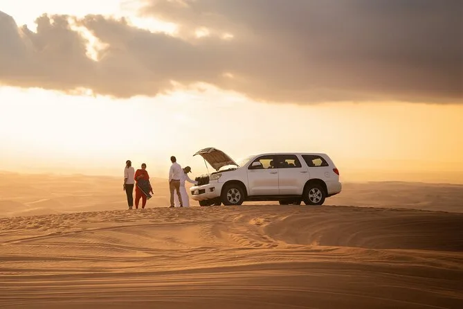 You’ll ride through Dubai’s Lahbab Red Dunes in a private 4x4, try your luck at sandboarding, taste Arabic coffee and BBQ under lanterns, watch live dance shows, and maybe even hold a falcon for a photo. It’s not just about adrenaline or food — it’s those small moments under desert stars that linger longest.
