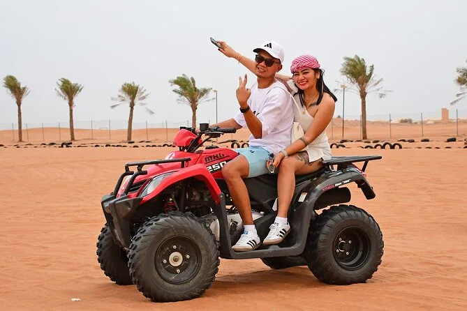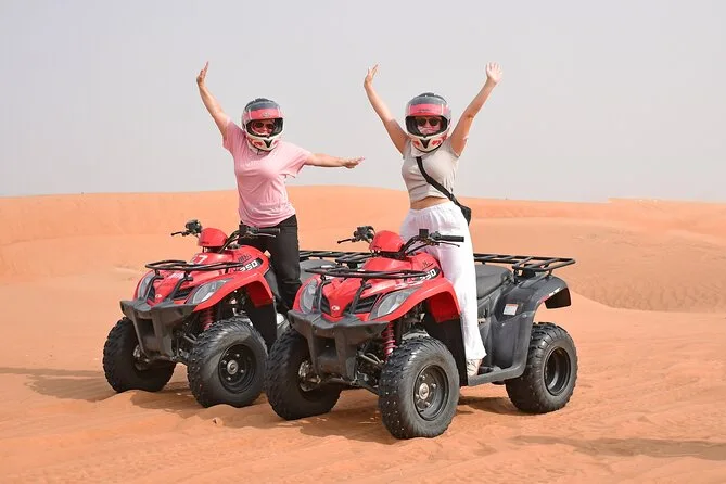 The self-drive quad biking session lasts 25 minutes across the Lahbab Red Dunes.