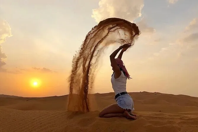 Your evening includes pickup and drop-off from anywhere in Dubai by 4x4 vehicle, a guided adventure through Lahbab Red Dunes with quad biking and sandboarding stops, plus camel riding before heading to a Bedouin-style camp for Arabic coffee rituals, henna tattoos, shisha lounge time and traditional dress-up photos. Dinner features a full BBQ buffet with live entertainment before you’re returned safely to your starting point.