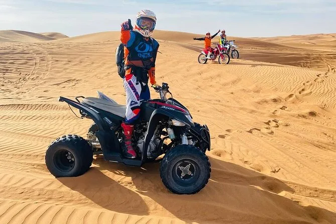 You’ll feel the rush of quad biking across open dunes near Dubai before slowing down for a camel ride and sunset views. Try sandboarding if you’re brave (or just laugh when you fall), then relax at a desert camp with live shows and a smoky BBQ dinner. It’s one of those days that lingers long after you’ve brushed off all the sand.