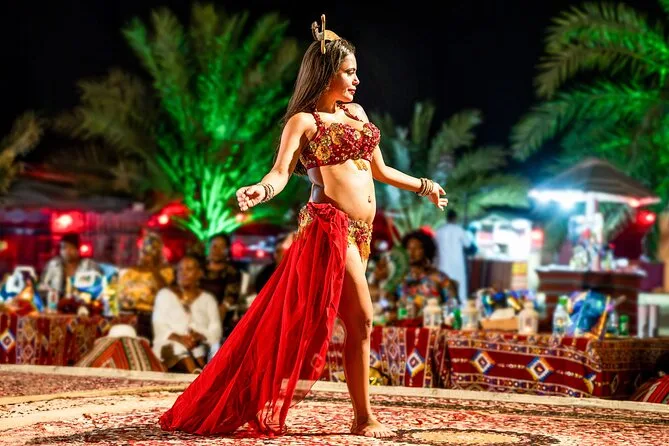 If you pick the longer option, you end up at this Bedouin-style camp as evening settles in — lanterns flickering, someone handing out tiny cups of cardamom coffee and dates (I’d never tasted Lugaimat before; they’re these sticky-sweet dough balls that make your fingers messy). There were henna artists painting hands, shisha pipes bubbling quietly, a falconer showing off his bird (the falcon looked unimpressed by us all). The BBQ dinner surprised me — smoky chicken skewers, veggie dishes for my friend who doesn’t eat meat. Somewhere between the fire show and the belly dancing, I realized how far away city life felt.
