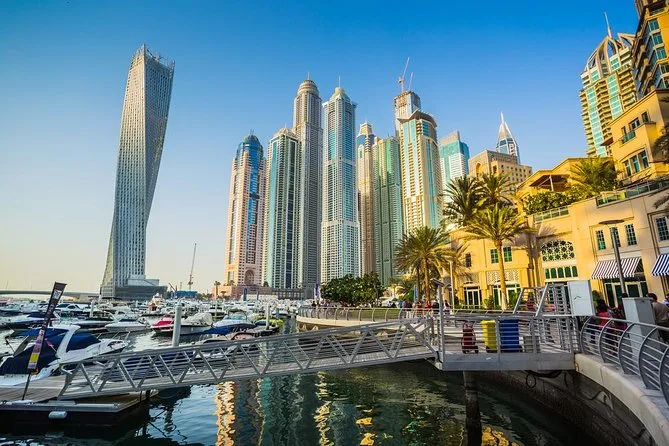 You’ll visit Al Farooq Mosque, Souk Madinat Jumeirah, Palm Jumeirah, Dubai Marina, Spice Souk, Gold Souk, and The Dubai Fountain.