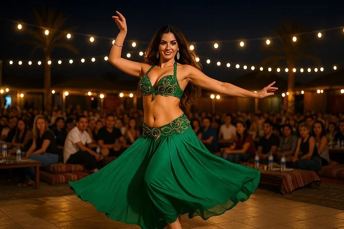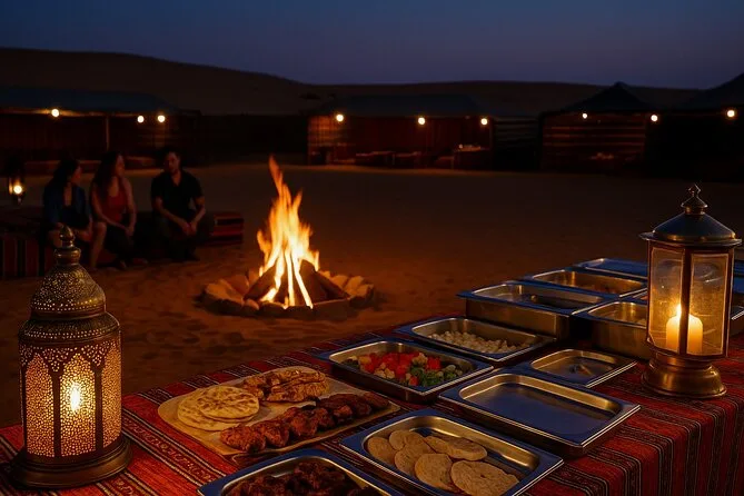 We rolled up to camp just as the light started turning gold. It smelled like charcoal and spices—someone was already grilling for the BBQ dinner. The place felt lively but not crowded: kids getting henna tattoos, people lining up for shisha or trying on those bright Arabic costumes for photos. I ended up with a falcon perched awkwardly on my arm (the handler winked at me—he knew I was nervous). Later there were live shows—music and dancing under this huge sky that felt bigger than any ceiling back home. The food was way better than I expected; even veggie options had real flavor. There’s something about eating outside after a day like that—it just hits different.