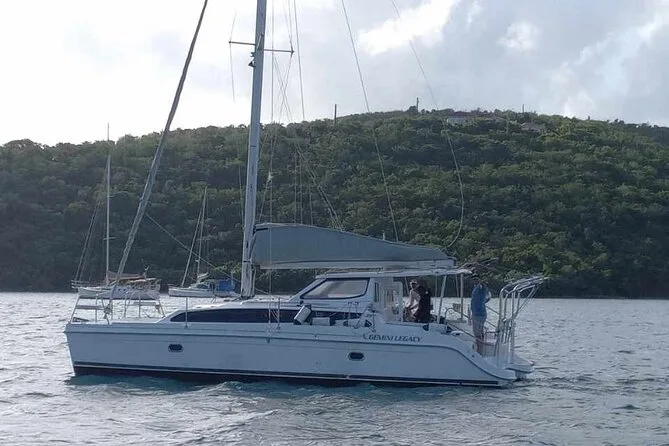Your day includes private use of a Gemini Legacy catamaran with space for eight guests; pick-up options from Red Hook or Cruz Bay dock; snorkeling equipment ready onboard; an assortment of beer, local Seas the Day rum punch, sodas and bottled water; plus plenty of time for swimming or relaxing before returning as sunset nears.