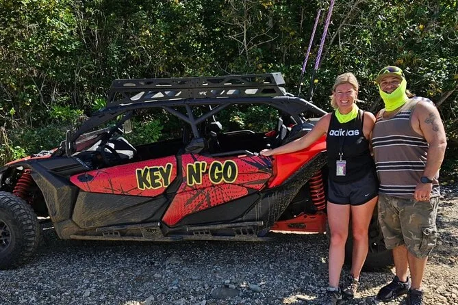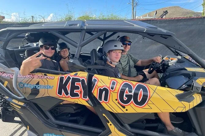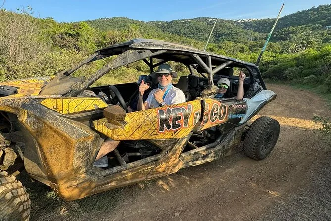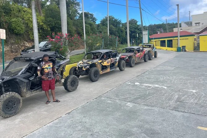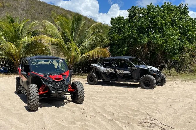 Your day includes pickup at Crown Bay Dock in St. Thomas, all fuel for your Can-Am Maverick x3 UTV or ATV, an expert local guide leading every step of the way, complimentary bottled water to keep you cool under the island sun, Bluetooth speakers so you can play your own music while driving those scenic trails—and all required safety gear like helmets and goggles before heading back dusty but happy.