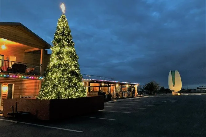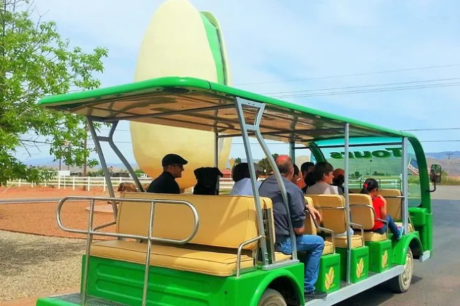 Your day includes a seat on an open-air electric vehicle through Alamogordo’s pistachio orchards and vineyard with a local guide sharing stories along the way; after touring you’ll enjoy free samples of house-roasted pistachios and candy in their shop plus complimentary wine tasting for guests over 21 before heading out again.