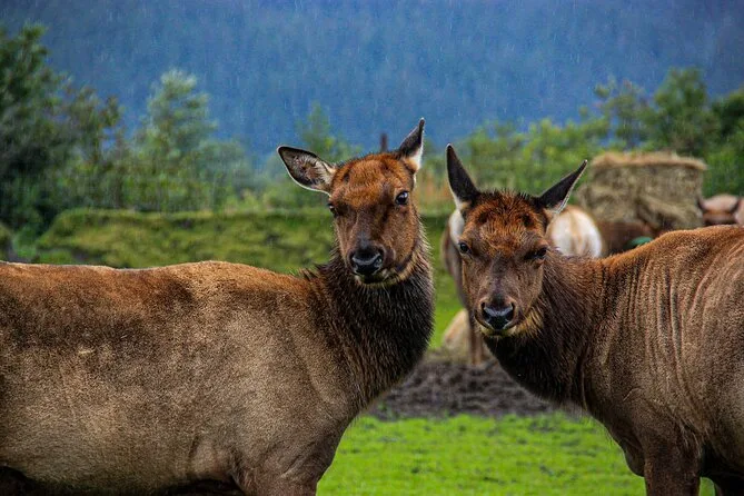 The Alaska Wildlife Conservation Center was louder than I expected—ravens calling overhead, and a musk ox snorting somewhere close by. We wandered past bears and moose (the moose looked bored; honestly relatable). Sam told us about each animal’s story—some rescued after car accidents or orphaned young. There was a moment by the river where everything went quiet except for wind in the grass and I just stood there watching elk graze. I still think about that silence.