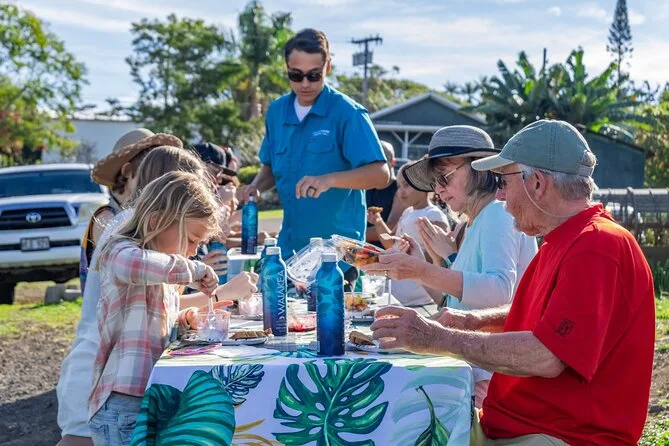 Your day includes hotel pickup and drop-off from Kona or nearby areas, guided tastings at Greenwell Farms for Kona coffee lovers, a deli-style picnic lunch outdoors, stops at a local bakery for fresh pastries (try the malasadas), time to explore Punaluʻu Black Sand Beach watching for turtles, an intimate guided walk through Kilauea’s volcanic landscapes inside Hawaii Volcanoes National Park led by certified guides who share stories you’d never read online—and finally a three-course dinner made from local ingredients at Kilauea Lodge before heading home in comfort with snacks and drinks always within reach.