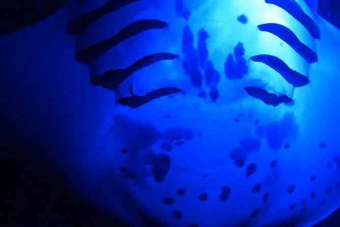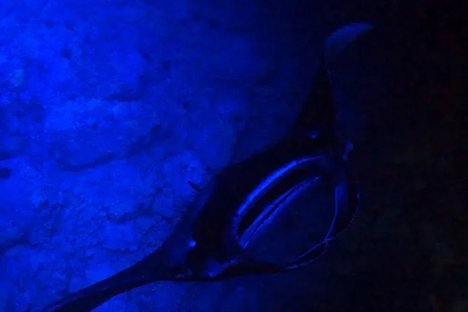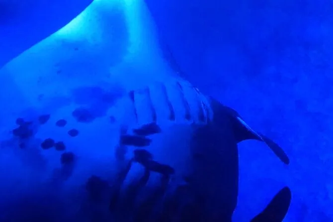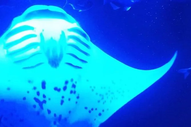 Your evening includes round-trip boat transport from Kailua-Kona to the snorkel site with all your snorkeling gear ready—mask, fins, wetsuit top plus floatation device—plus guidance from local experts who share live commentary. After swimming with manta rays at night you’ll warm up with light snacks and bottled water before heading back ashore.