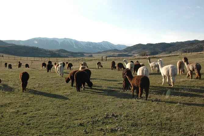 Your visit includes hands-on time with alpacas and llamas—feeding them treats by hand—plus meeting other resident animals like Anatolian guard dogs and chickens (and maybe horses if it’s their season). You’ll get guidance from your local host throughout, plenty of photo ops across the working farm grounds, and finish up with your choice of keychain or sticker as a small souvenir before heading back into Bozeman.