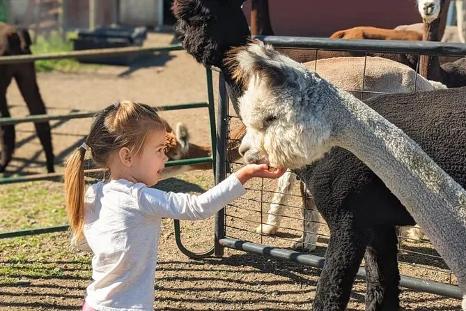 Yes! You’ll feed treats by hand and can help halter or bathe alpacas with guidance from your host.