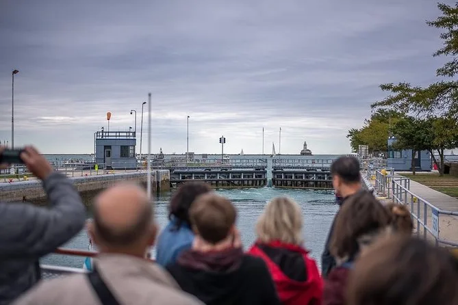 Yes, after exploring architecture along the river, you’ll pass through the lock onto Lake Michigan for skyline views.