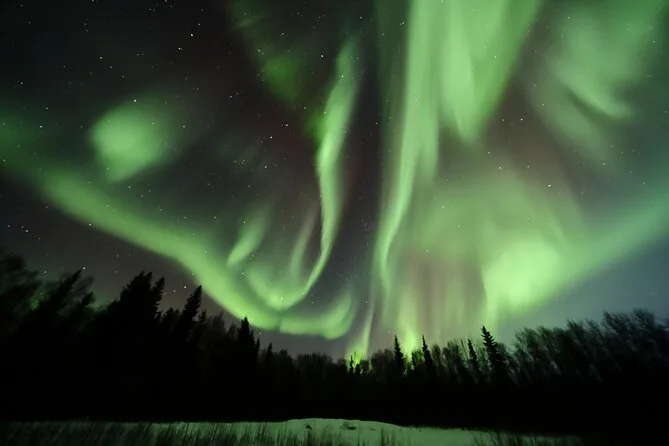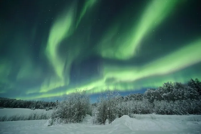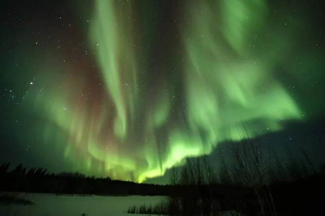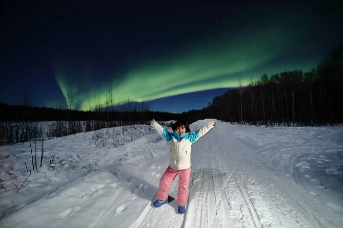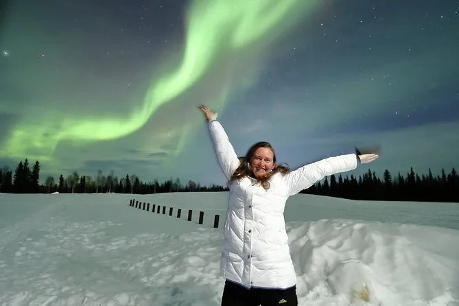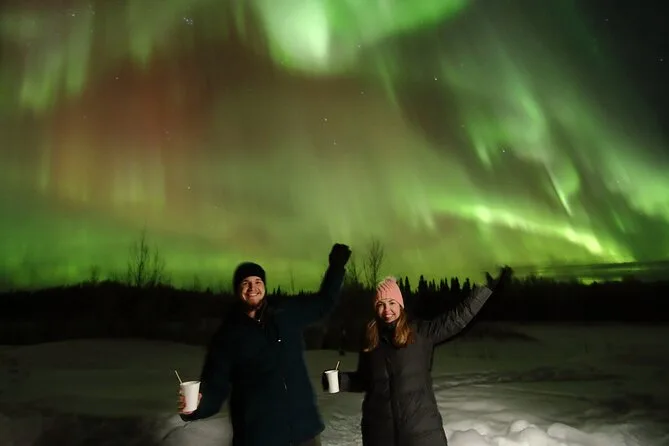 The tour drives 15-40 miles north of Fairbanks to find optimal viewing spots for the northern lights.