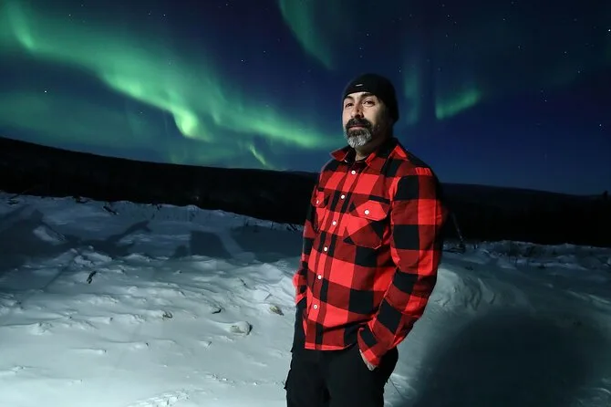 I still think about that silence when everyone just looked up — no one talking or even shuffling around much. Later Nathan sent us these wild photos where you could see our faces lit up against those swirling colors. The whole thing felt less like a tour and more like hanging out with someone who genuinely loves what he does (and knows how not to freeze his guests). We drove back to Fairbanks sometime after 3am, tired but wired from all that cold and color. Not sure I’ll ever see anything quite like that again.
