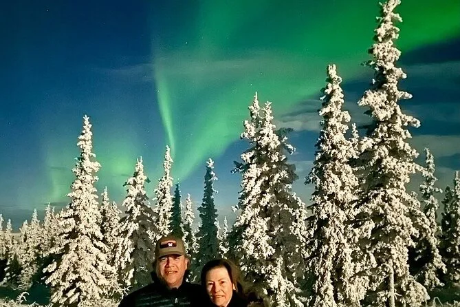 Your day includes hotel pickup and drop-off within Fairbanks city limits, all transportation in a climate-controlled van with a knowledgeable local guide leading your small group, lunch (with vegetarian option if you let them know ahead), coffee or tea on board, plus your personalized Arctic Circle certificate before heading back south late at night.