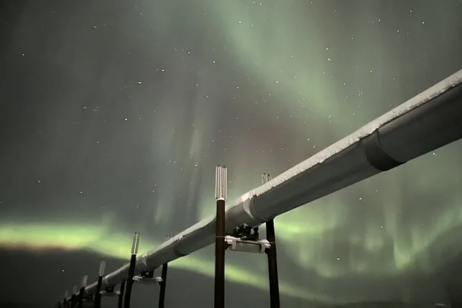 You’ll ride from Fairbanks along the Dalton Highway with a local guide, cross into the Arctic Circle and watch for Northern Lights above endless snowfields. Expect pie stops, quiet moments by the Yukon River, laughter over lunch, and maybe—if you’re lucky—a sky that glows green while you sip hot coffee in the cold.