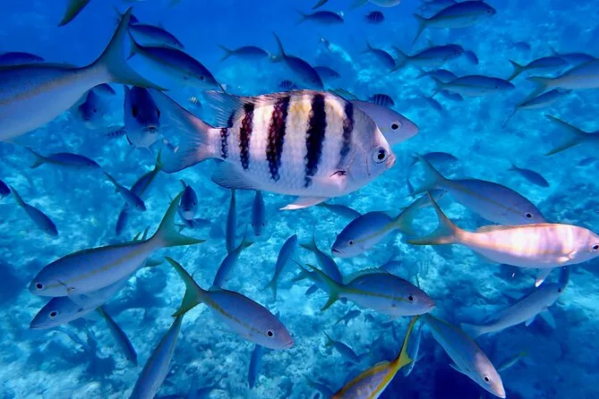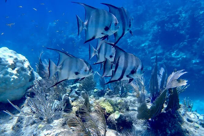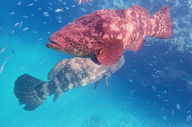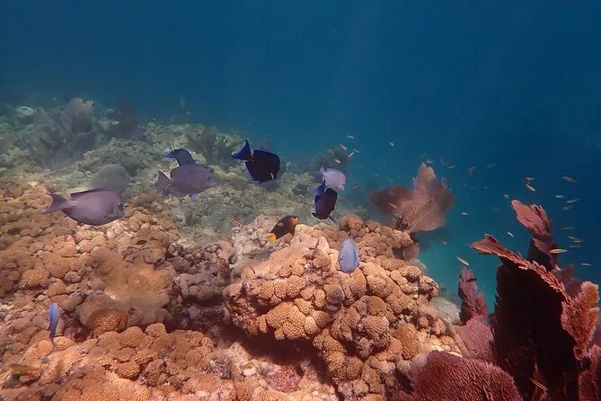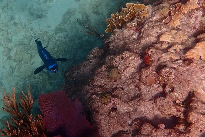 You may spot barracuda, rays, nurse sharks, parrotfish, blue tangs, and other tropical fish around the reef.