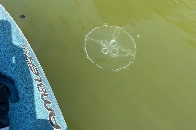 I tried paddleboarding for half an hour (wobbly legs) before switching back to kayak. The sun started warming up fast but there was always a breeze off Mosquito Lagoon. We drifted past tangled roots where tiny blue crabs darted around and white egrets watched us like we were intruding on their morning routine. At one point, Jamie pointed out comb jellies floating just under the surface — they look almost fake until you see them pulse with light when you disturb the water.