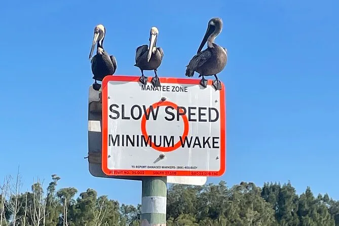 You might spot manatees (especially March-August), bottlenose dolphins, Floridian birds like egrets and pelicans, comb jellies, horseshoe crabs, and sometimes alligators.