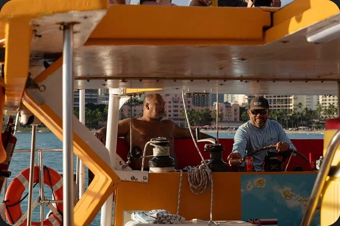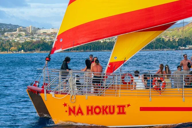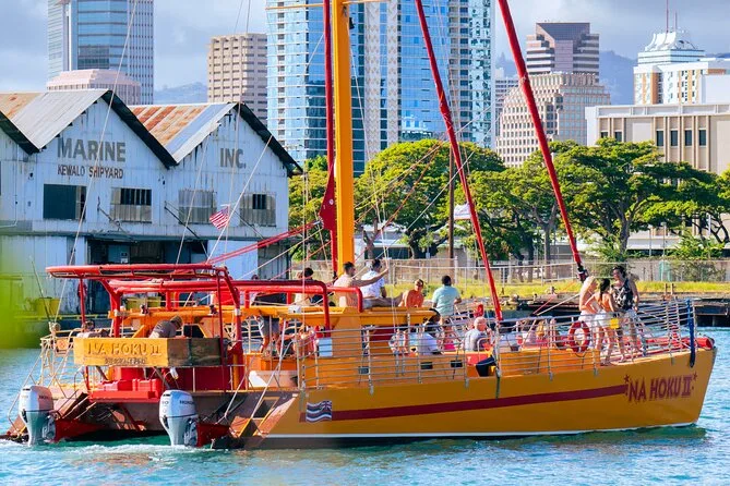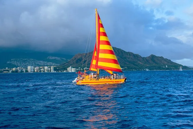The tour uses an iconic large yellow catamaran with decades of experience sailing Oahu waters.