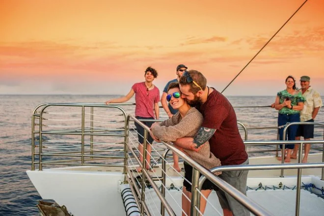 You’ll share laughs with local crew, snorkel off Kauai’s Na Pali Coast if conditions are right, spot dolphins or turtles from your catamaran deck, then eat barefoot as the sun sets behind wild green cliffs. This sunset cruise blends casual food, open-bar drinks, and warm company—leaving you with memories that feel more like stories than snapshots.