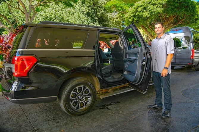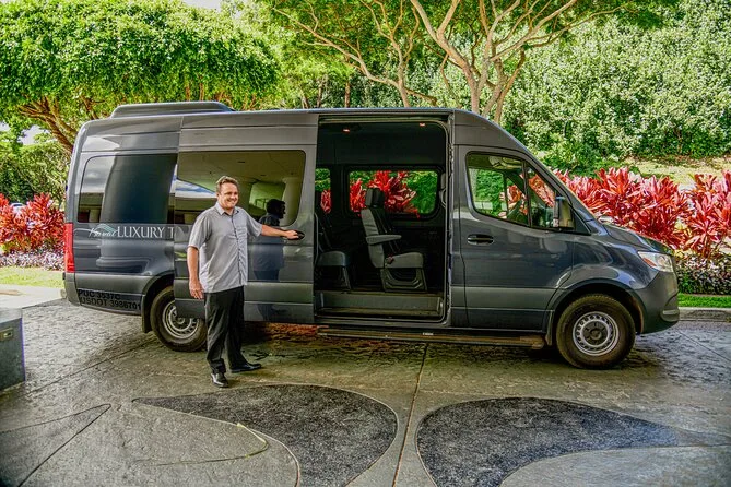 Your day includes hotel pickup and drop-off between Princeville and Kapaa (or meeting point at Smith's Boats), entry fees for all attractions on the route including Fern Grotto river cruise tickets, an entertaining local guide throughout your journey, comfortable air-conditioned transport in a luxury Sprinter or SUV depending on group size—and plenty of time exploring Kauai’s north and east shores before returning in comfort.