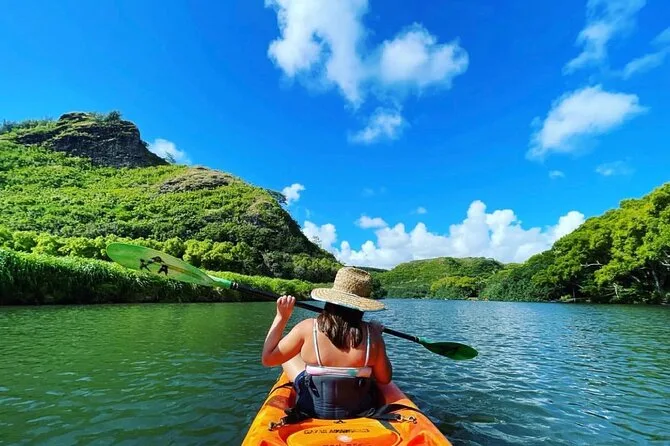 You’ll paddle Kauai’s Wailua River with a local guide, hike muddy rainforest trails to Uluwehi Falls (Secret Falls), snack riverside, and soak up stories of ancient Hawaii along the way. Expect wet shoes, laughter, quiet moments by the waterfall—and a day that lingers in memory longer than you’d think.
