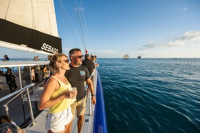 You’ll board a 60-foot catamaran in Key West for an easygoing afternoon dolphin sail, watching wild pods play right beside you. Sip wine or beer as you drift past local sights and out to sea with a small group and friendly crew. There’s laughter, salty air, and those rare quiet moments when dolphins appear—leaving you with more than just photos.