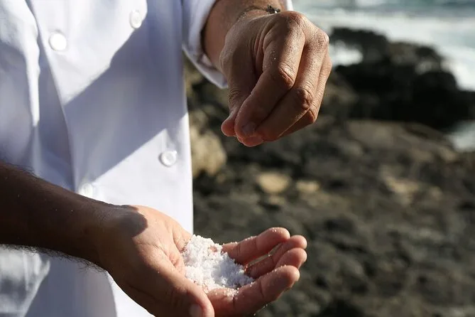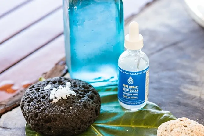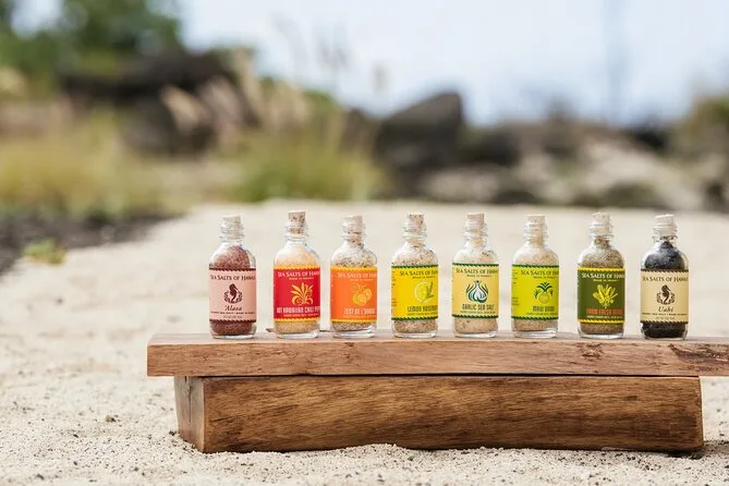 Your day includes a guided walking tour with a local expert through Hawai‘i Island’s only working salt farm in Kona, an educational look at deep ocean water harvesting and solar evaporation methods, a full tasting of pure and flavored salts (including smoked varieties), plus cold deep ocean magnesium mineral water to drink — with an optional foot soak if you want to try it before heading out.