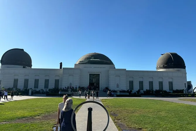 Your day includes pickup in Anaheim and comfortable transport between all major sights: Griffith Park Observatory for sweeping city views; guided stops at Hollywood Boulevard landmarks like Dolby Theater and Chinese Theatre; time at Dorothy Chandler Pavilion; shopping or lunch break at Los Angeles Original Farmers Market; glimpses of Rodeo Drive glitz; plus free time at Santa Monica Pier and Venice Beach before returning in the evening.