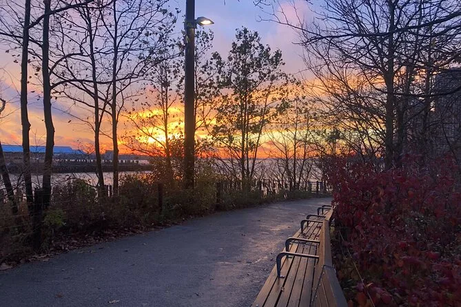 DUMBO felt different—quieter but somehow more alive? We wandered past these old warehouses turned into fancy shops and lofts, and Scott told us who used to live there before it got trendy. He led us to this spot under the Manhattan Bridge where everyone takes that famous photo (yep, we did too). The air smelled like pizza dough and river water; I could hear someone playing saxophone down by the park. We ended up at Brooklyn Heights Promenade just as lights flickered on across Manhattan. My feet were done for, but honestly? Worth it. I still think about that view sometimes when I’m stuck on the subway.