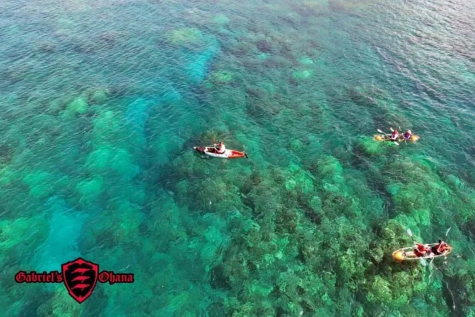Your day includes use of newly manufactured clear kayaks with pontoon stabilizers, long-sleeve rash guards for sun protection, reef-safe sunscreen applied before heading out, dry bags for your belongings, locally grown bananas and granola while on the water plus ice-cold filtered water throughout—and when you return to shore there’s freshly cut Hawaiian pineapple dusted with li hing mui powder waiting for you.