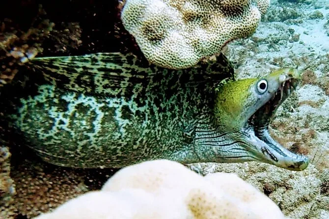 You might spot sea turtles, eels, octopus, manta rays, seals, schools of fish, and humpback whales (December–April).