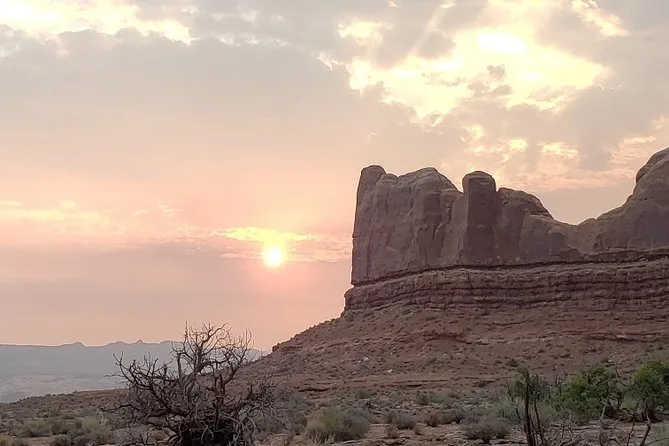 You’ll feel the thrill of entering Arches by its wild side near Moab—bumping down old roads in a Jeep, spotting dinosaur tracks, hearing local stories, and standing under arches without crowds around you. Expect real desert air, laughter with your guide, and moments where time slows down under all that sky.
