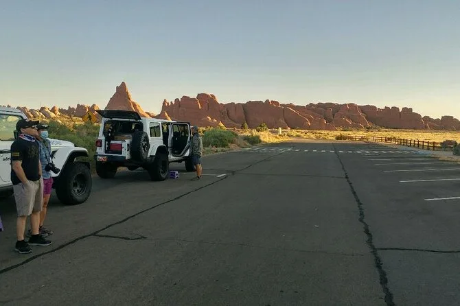 Your day includes transport by enclosed 4x4 Jeep Rubicon with an experienced local guide at the wheel, ice-cold water and snacks along the way (bring your own bottle if you want refills), plus parking at their office if you’re driving yourself. No timed entry tickets needed—they handle access via special permit through Willow Springs Road into Arches’ quieter corners before looping past famous arches and formations before heading back to Moab.