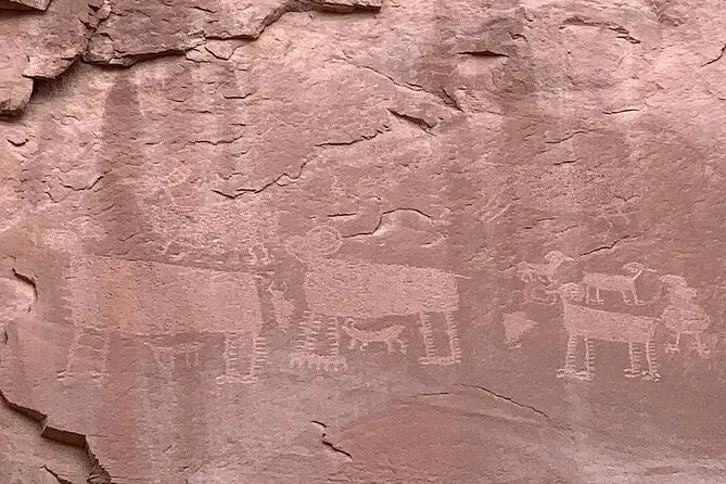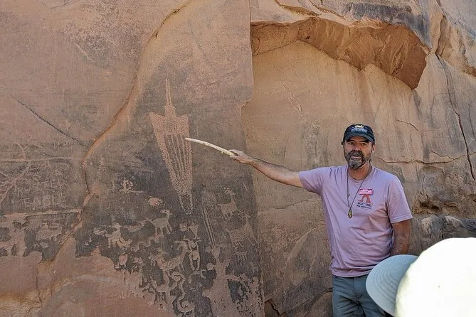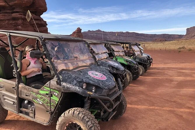 Your day includes meeting at the Moab Tourism Center for check-in, bottled water to keep you going in the desert air, a guided ride in an automatic four-seat UTV (you get to drive), narration from your local guide about geology and ancient cultures along Kane Creek Road—and plenty of stops for photos and petroglyph viewing before returning to town.