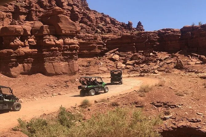 Your day includes meeting at the Moab Tourism Center for check-in, bottled water to keep you going in the desert air, a guided ride in an automatic four-seat UTV (you get to drive), narration from your local guide about geology and ancient cultures along Kane Creek Road—and plenty of stops for photos and petroglyph viewing before returning to town.
