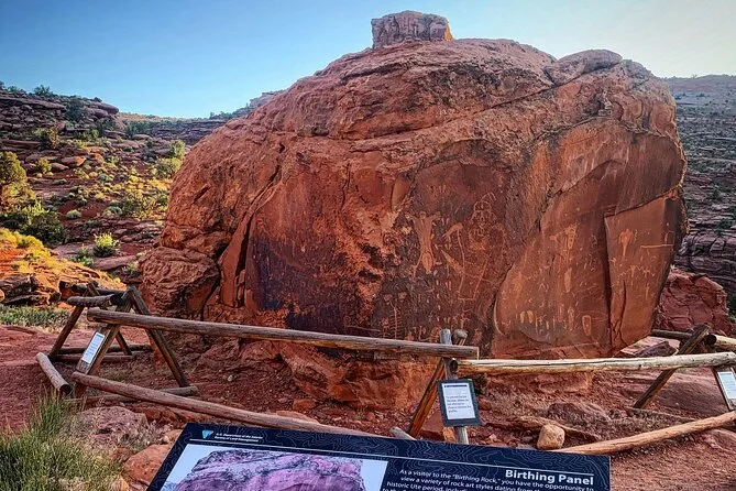 Your day includes pickup in Moab with a local guide who shares stories along the way; bottled water and Rice Krispy Treats for snacking; stops at petroglyph sites, canyon overlooks, arches and spires; plus comfortable seating in either an open-air private vehicle or larger group transport depending on your group size.