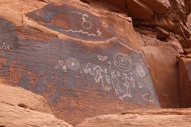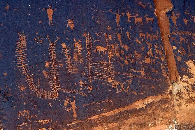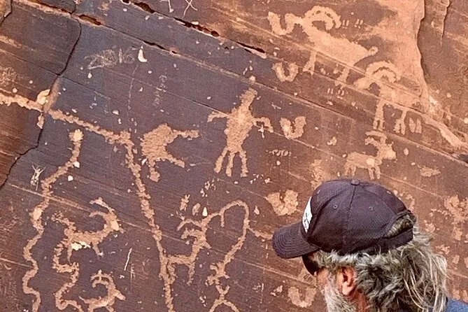 You’ll see canyon views, ancient petroglyph panels, arches, red rock spires, and Colorado River scenery.